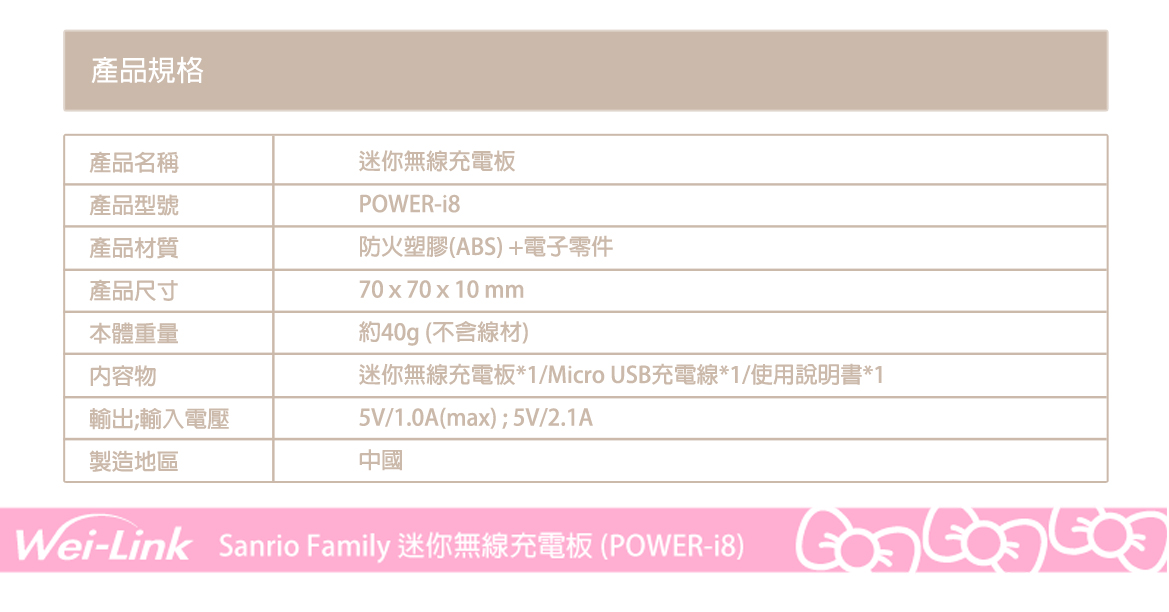 ◆支援Qi無線充電,充電不受”線”制 ◆簡潔流暢的時尚外觀,輕薄不佔空間 ◆通過NCC檢驗合格,安全有保障 ◆輸出電壓:5V/1.0A ◆輸入電壓:5V/2.1A ◆NCC認證字號:CCAJ17LPA250T1