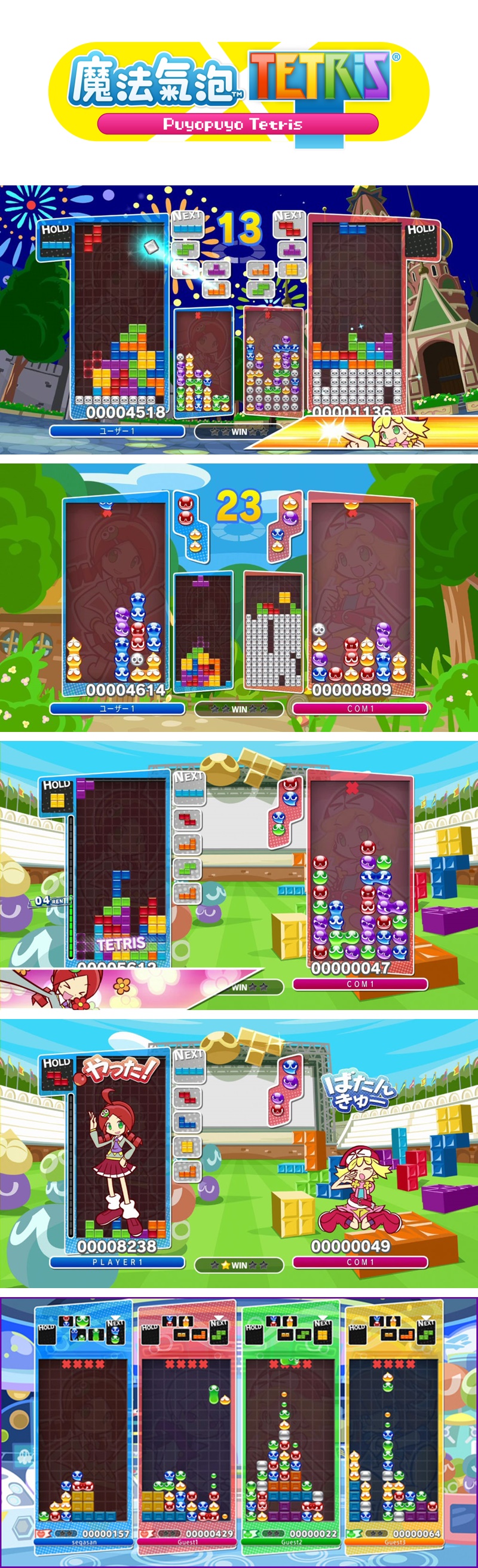 國民級、世界級的動作益智遊戲「魔法氣泡」與「俄羅斯方塊」。眾人皆知的2大動作益智遊戲的巔峰對決終於在『魔法氣泡俄羅斯方塊』實現了。「魔法氣泡」「俄羅斯方塊」的對戰能以各式各樣的規則來遊玩。當然,也能進行「魔法氣泡」對「魔法氣泡」、「俄羅斯方塊」對「俄羅斯方塊」的對戰,並收錄魔法氣泡與四格骨牌會一起出現在同1個場地上的新規則。